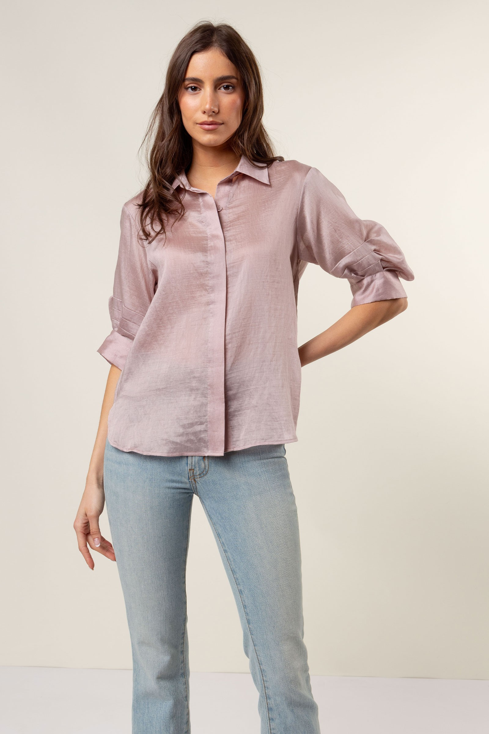 The details: Soft, breathable fabric with pleated short sleeves for texture. Button-up design for a classic and flattering fit. Perfect for both casual and professional settings, offering effortless style. Model Measurements: Height 5' 9" / 175cm Bust 32" / 81cm Waist 24" / 61cm Hip 35" / 89cm Fabric: Woven 25% Rayon 15% Nylon 4% Linen 56% Tel Hand Wash Cold